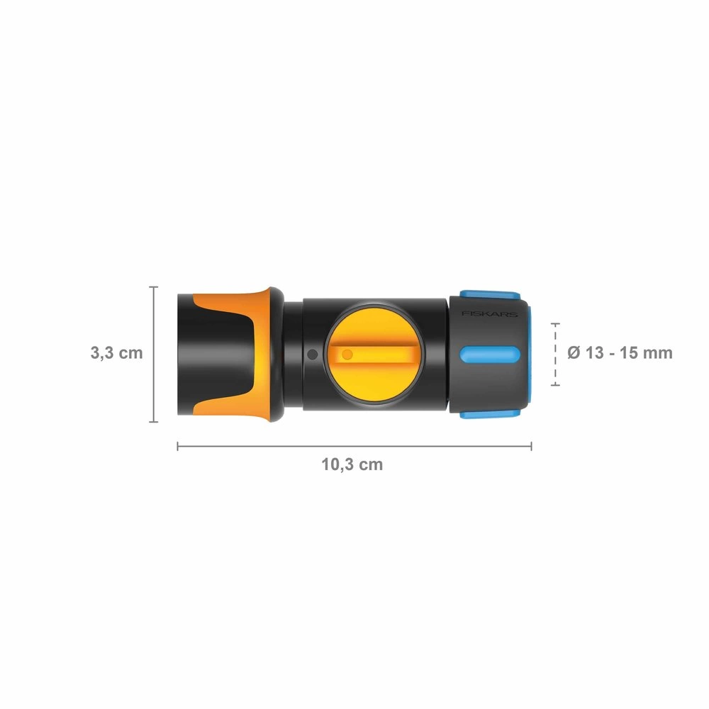 Repérez facilement le raccord de la bonne taille pour votre tuyau grâce à un système unique de code couleur : bleu pour 13-15 mm, rouge pour 19 mm et jaune pour 9 mm. Tous les raccords de tuyaux Fiskars sont compatibles avec des produits d'arrosage d'autres marques.