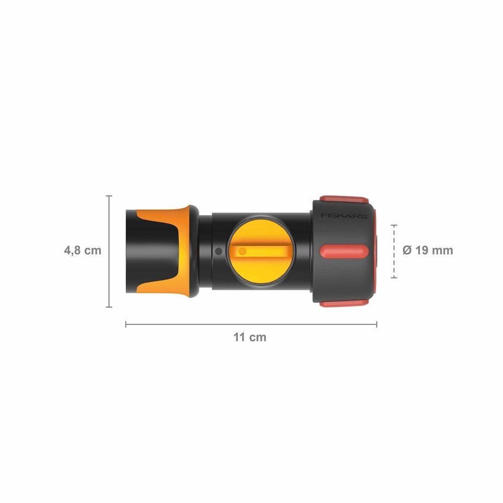 Repérez facilement le raccord de la bonne taille pour votre tuyau grâce à un système unique de code couleur : bleu pour 13-15mm, rouge pour 19mm et jaune pour 9mm. Tous les raccords de tuyaux Fiskars sont compatibles avec des produits d'arrosage d'autres marques.